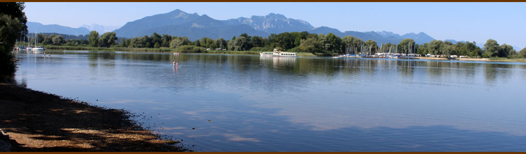 Genießen Sie den längsten Naturbadestrand des Chiemsees und die eindrucksvollen Berge der Chiemgauer Alpen, mit den vielfältigen Möglichkeiten für Sport und Entspannung.
